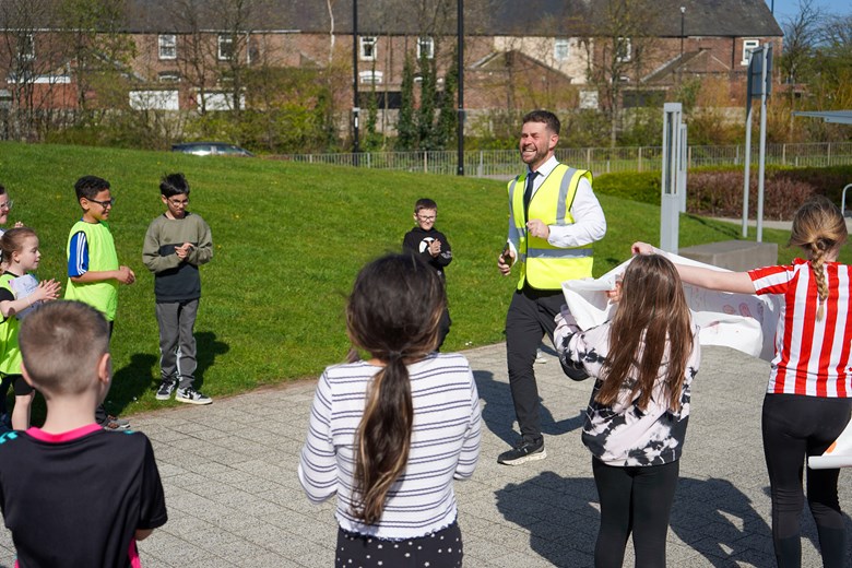 Upon arrival in Sunderland, Peter was greeted by children taking part in Foundation of Light’s holiday courses at the Beacon of Light, who wished him good luck for the rest of his journey.
